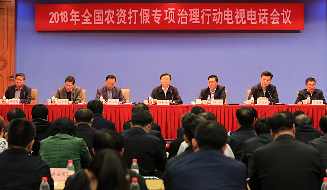 本網訊 3月30日,農業農村部、最高人民法院、最高人民檢察院、工業和信息化部、公安部、國家市場監督管理總局、中華全國供銷合作總社七部門聯合召開2018年全國農資打假專項治理行動電視電話會議,總結2017年及過去五年工作,部署2018年農資打假重點工作。農業農村部部長韓長賦在會上強調,要堅決貫徹落實黨中央國務院部署要求,狠抓農資市場監管,保障供應和質量安全,確保春耕生產需要,維護農民合法權益,以更有力的舉措推進質量興農、綠色興農。